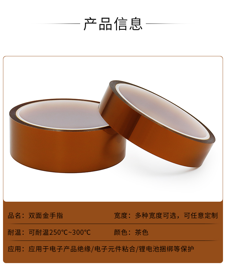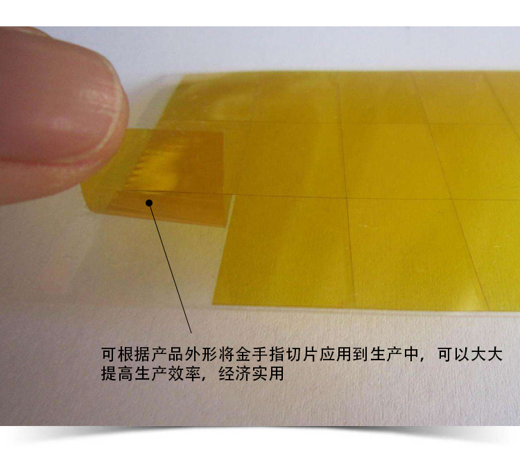 - 金手指膠帶,又稱Kapton膠帶或聚酰亞胺膠帶,該膠帶以聚酰亞胺薄膜為基材,單面涂布高性能有機硅壓敏膠,有單面氟塑離型材料復合或不復合兩類材料。涂布高精度達到±2.5um,無刮痕,拉絲等現象·,剪切性佳,易沖型模切加工,具有優(yōu)異的耐高溫性和耐溶劑性能!