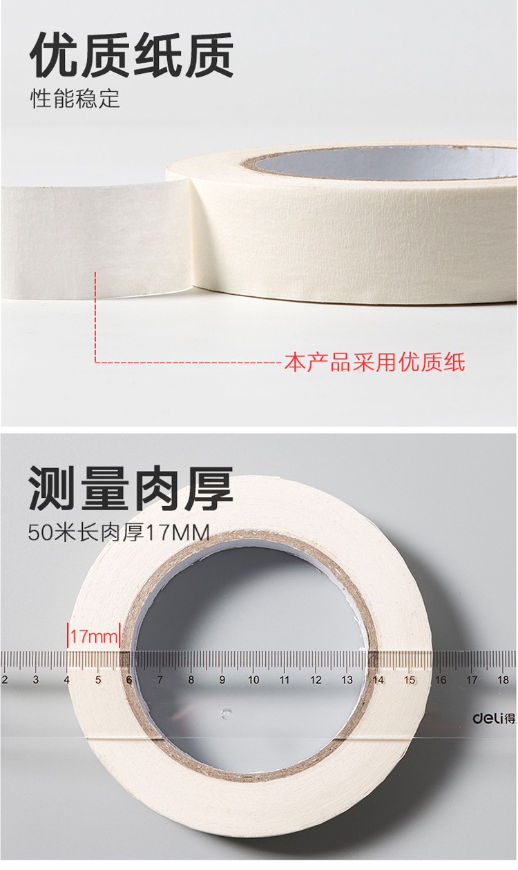 - 粘性好,耐溶劑佳,易剝離且不殘膠。根據(jù)粘性的不同,可以分為:低粘美紋紙膠帶、中粘美紋紙膠帶、高粘美紋紙膠帶。